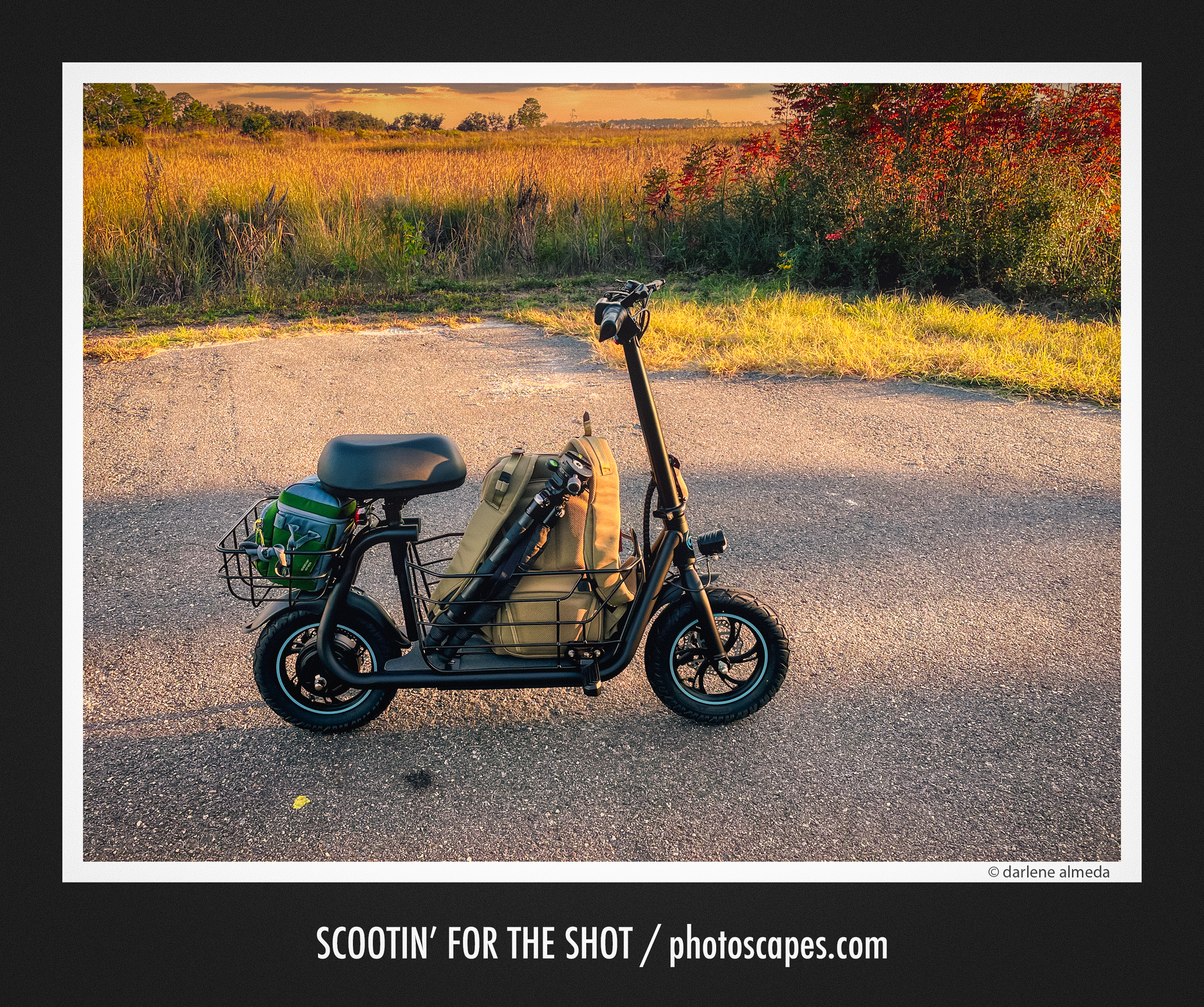 The point of this article is simple: a scooter can give you a wonderful sense of independence if you’re the sort of photographer who carries a lot of gear but has zero interest in dragging wagons, carts, or 75-pound e-bikes across creation. I stay on designated biking trails and roads, but this little scooter gets me everywhere I need to go—and I’d buy it again in a heartbeat. I’m not a fan of doing reviews, and I have no interest in selling other people’s products. My intention is simply to share how I work with what I have, and what has genuinely made my field life easier. At this stage in life, any piece of gear that carries me instead of me carrying it earns a permanent parking spot in the van.