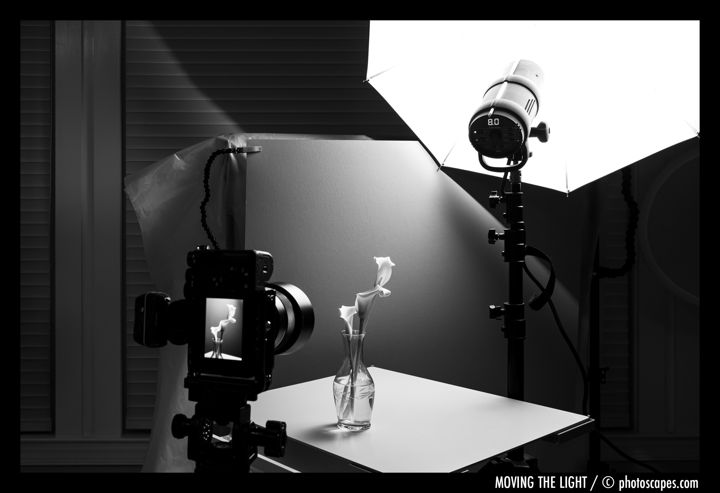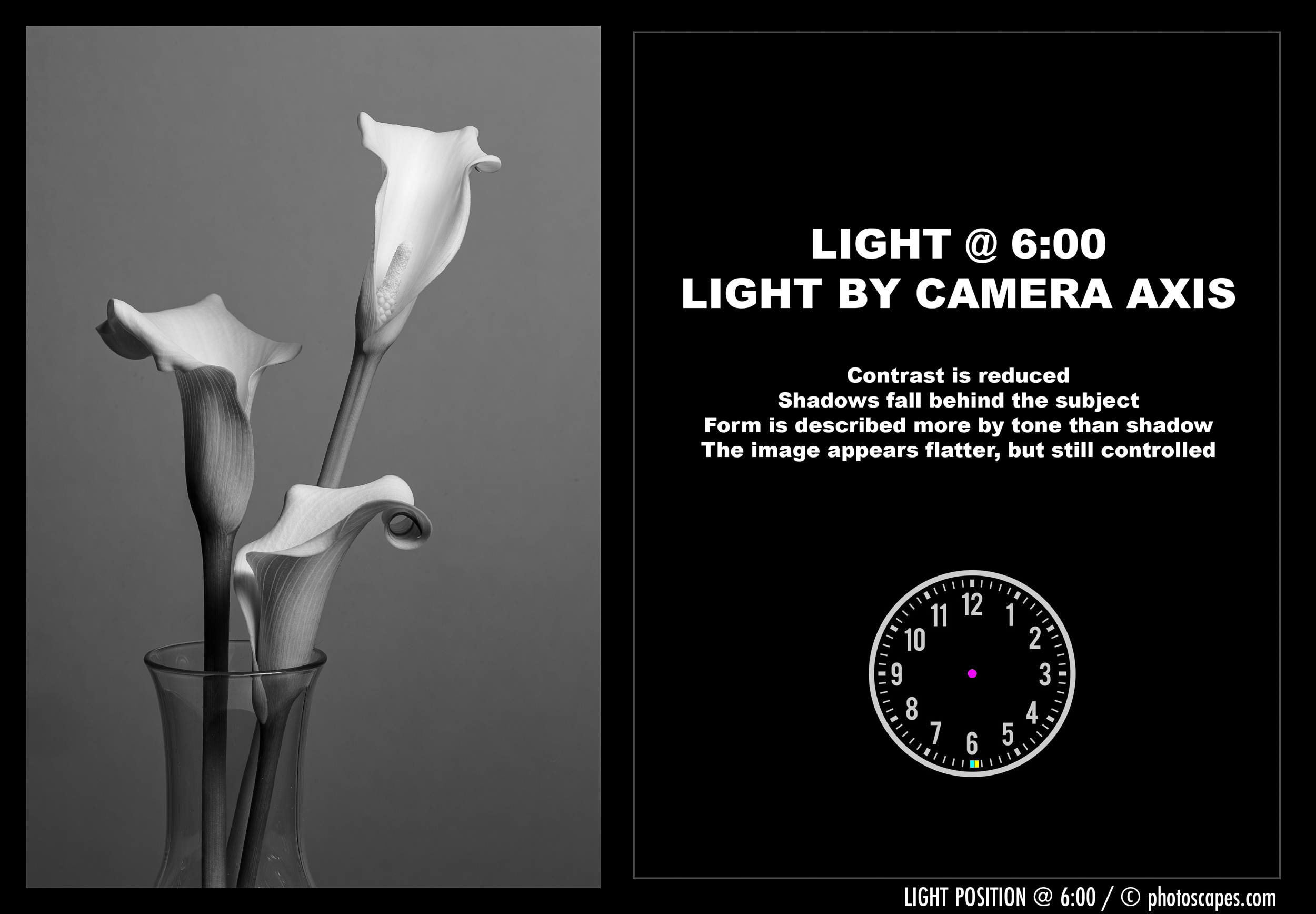 Below is the sequence of images in black and white. The clock positions describe the light’s placement relative to the subject, with the camera positioned at approximately six o’clock.