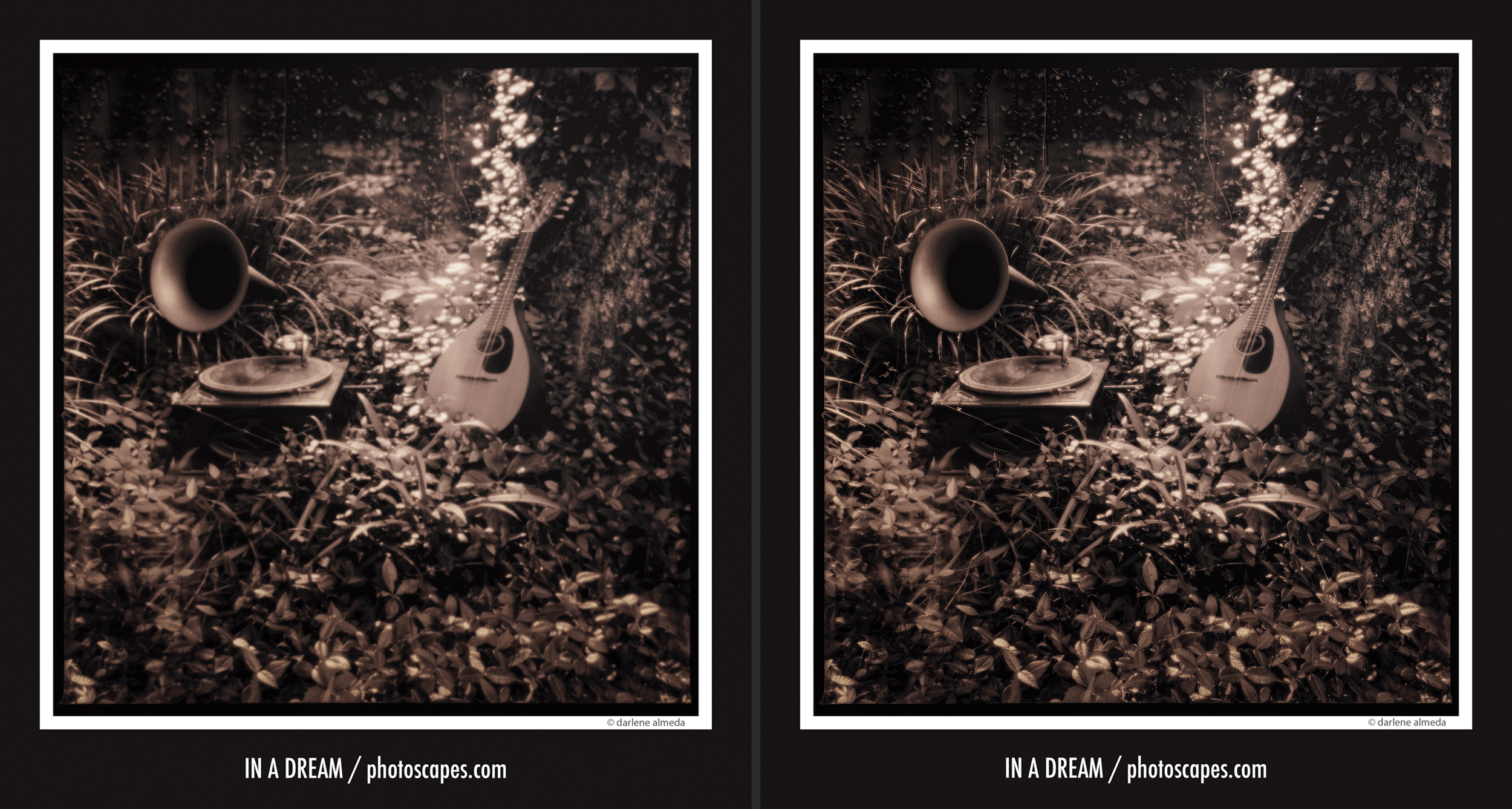 The image comparison above shows ‘In A Dream,’ created with the Hasselblad 501CM and a CCB pinhole lens of 0.35mm. The left image has no sharpening applied, while the right image has been sharpened using Topaz Sharpen AI.