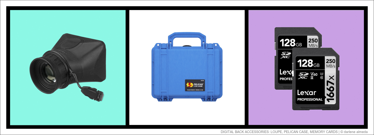 DIGITAL BACK ACCESSORIES: LOUPE, PELICAN CASE, MEMORY CARDS