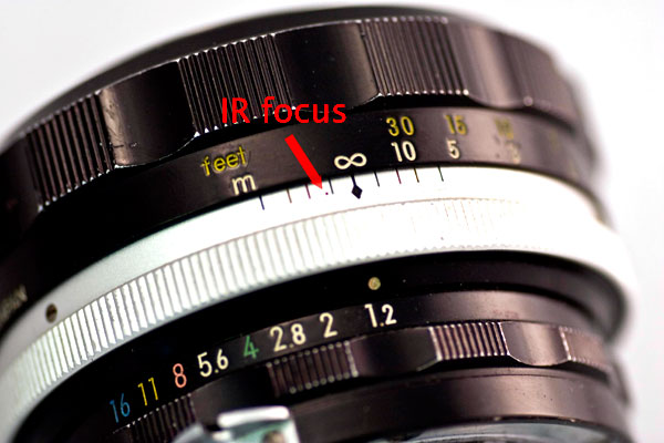 Older manual-focus lenses often included a small red index mark indicating the IR focus shift, but most modern lenses lack this feature. In those cases, stopping down the aperture increases depth of field and helps compensate for the shift.