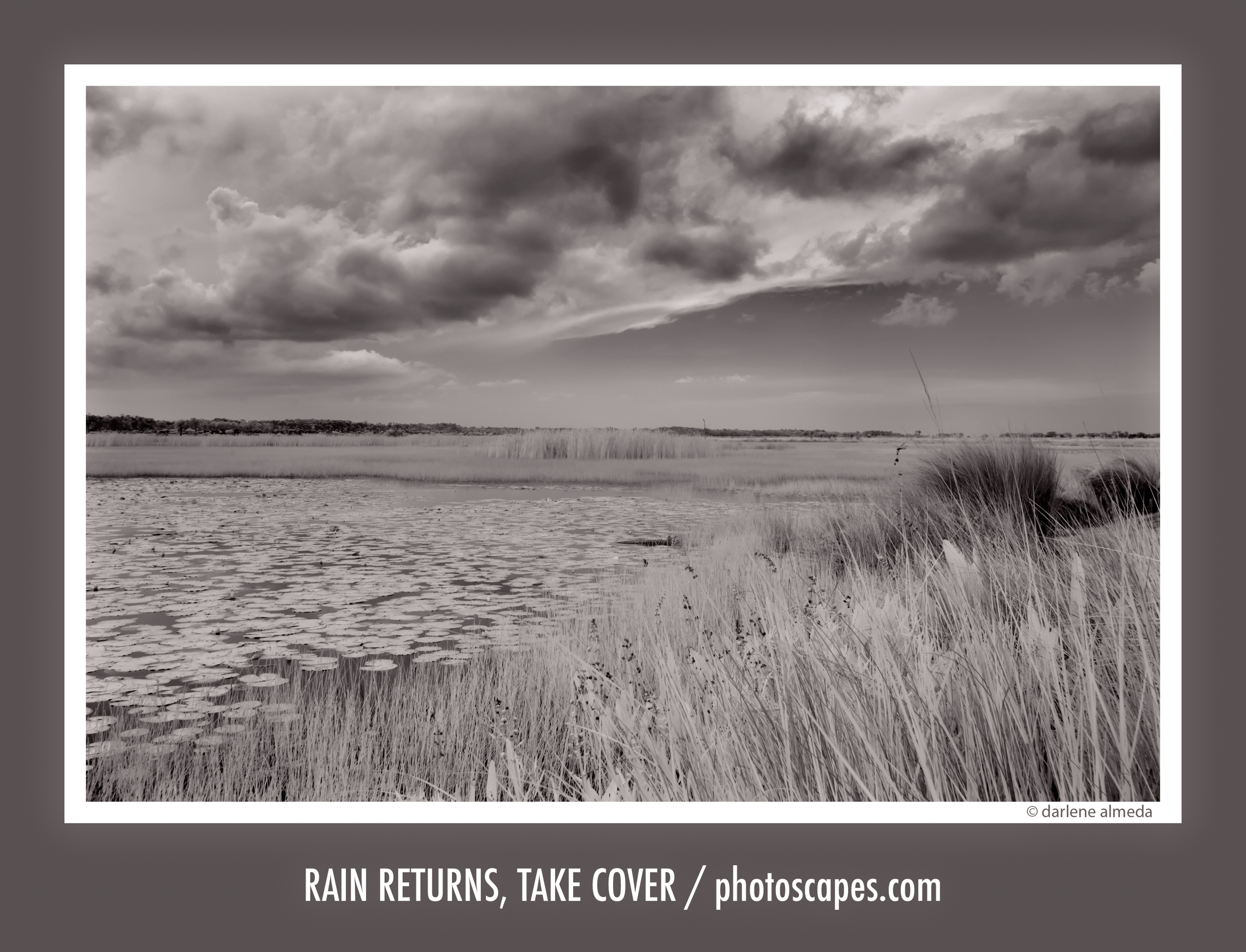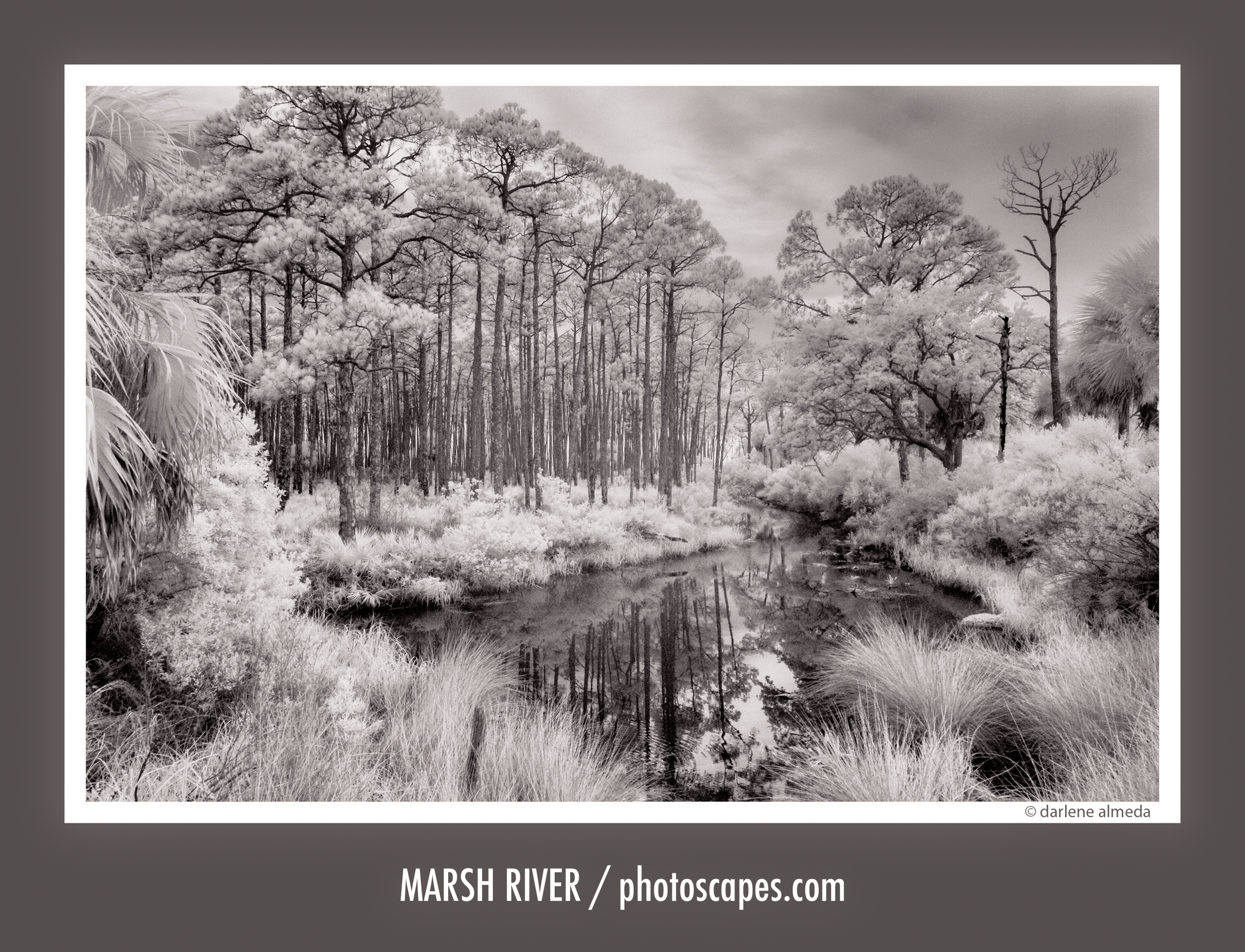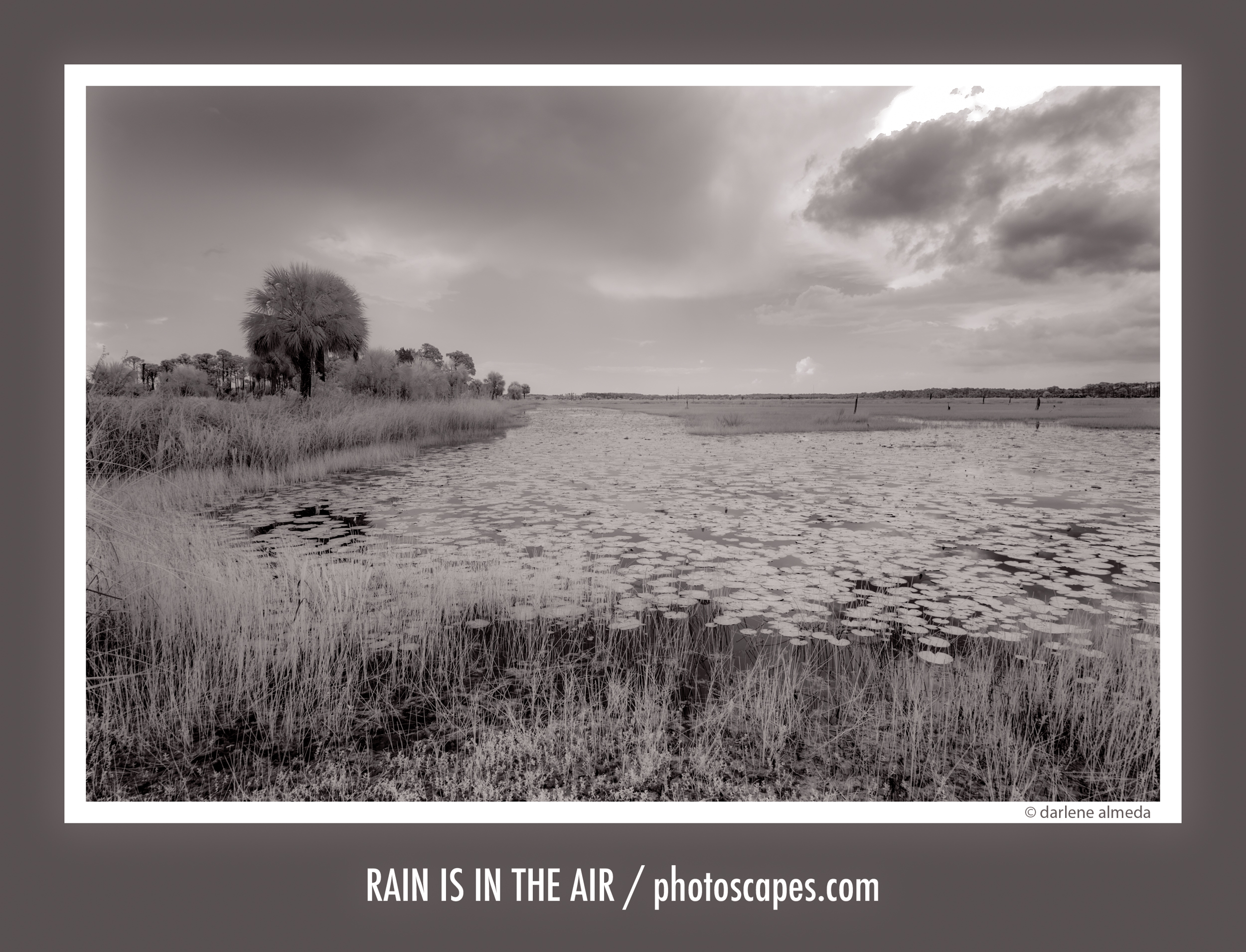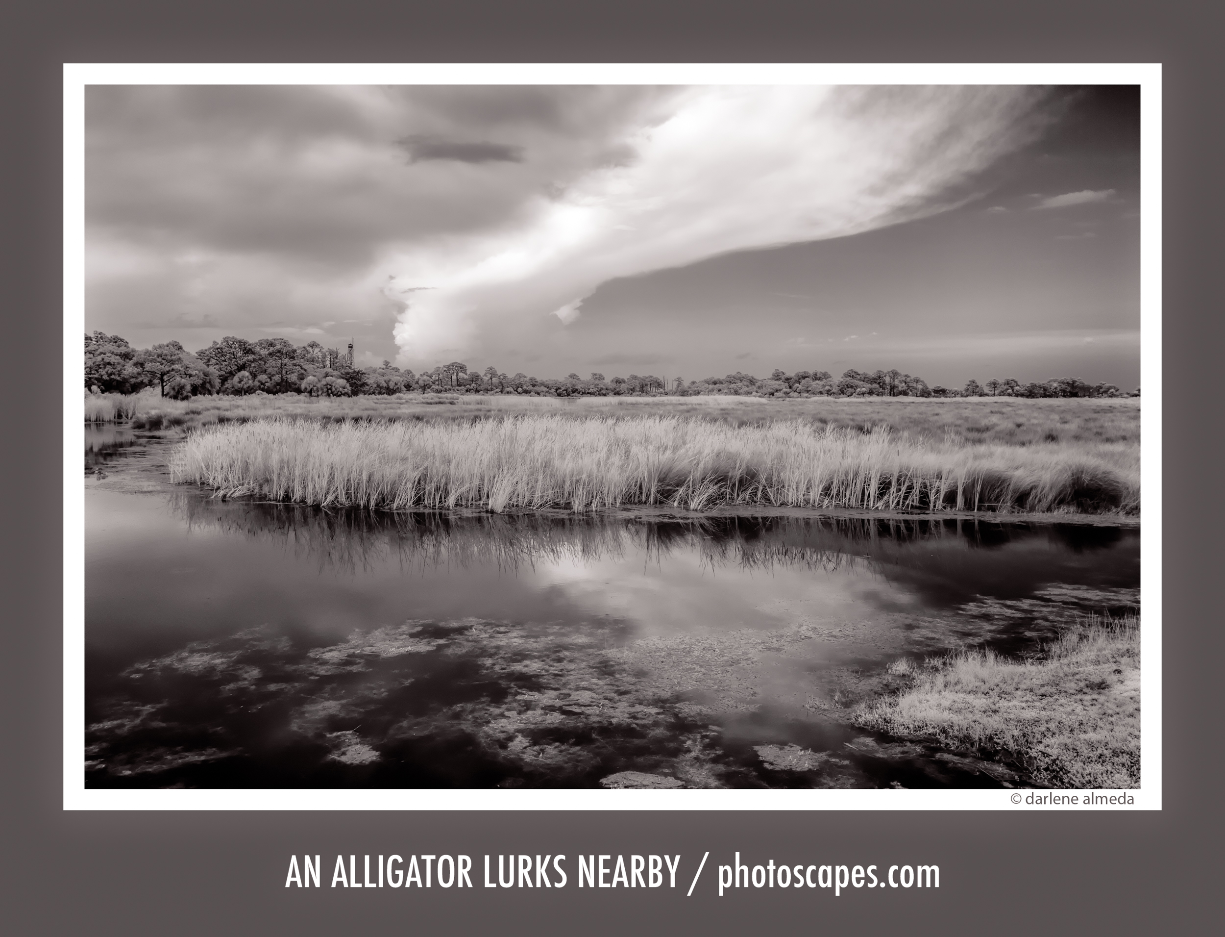 Despite the weather, the session was productive. Iâve already uncovered a few quirks in how my gear responds to IR light and plan to head out again soon to test several new technical ideas. On that first outing, the drive to St. Marks National Wildlife Refuge was marked by a downpour that turned into a soft drizzle by the time I arrived. My first and last images were made in that delicate rainâa fitting reminder that infrared light reveals its own mood, even under stormy skies.