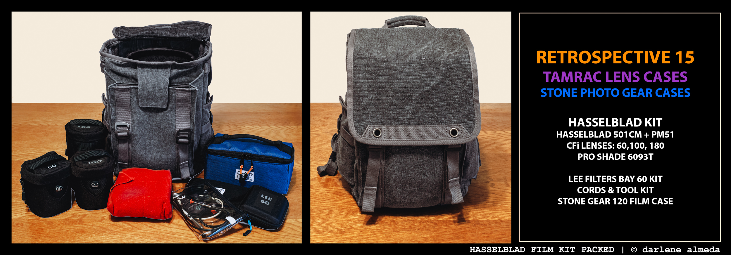 HASSELBLAD KIT IN RETROSPECTIVE 15 + TAMRAC & STONE PHOTO CASES